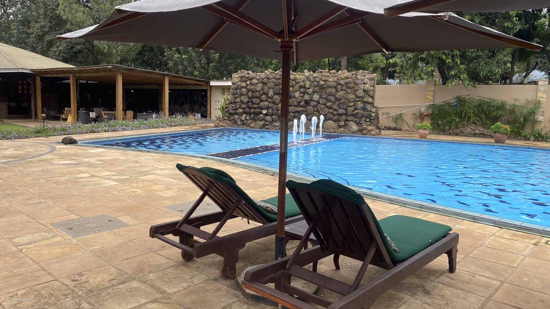 Eine offene Gestaltung des Restaurant und Bar-/Loungebereichs zur großzügig angelegten Poolterrasse mit Sonnenliegen und weiteren Sitzgelegenheiten inmitten des gepflegten Gartens versprechen Entspannung pur. Auch die ruhige Lage bei gleichzeitig zentraler Lage zur Stadt - perfekt, um vor oder nach dem Kilimanjaro zu entspannen.