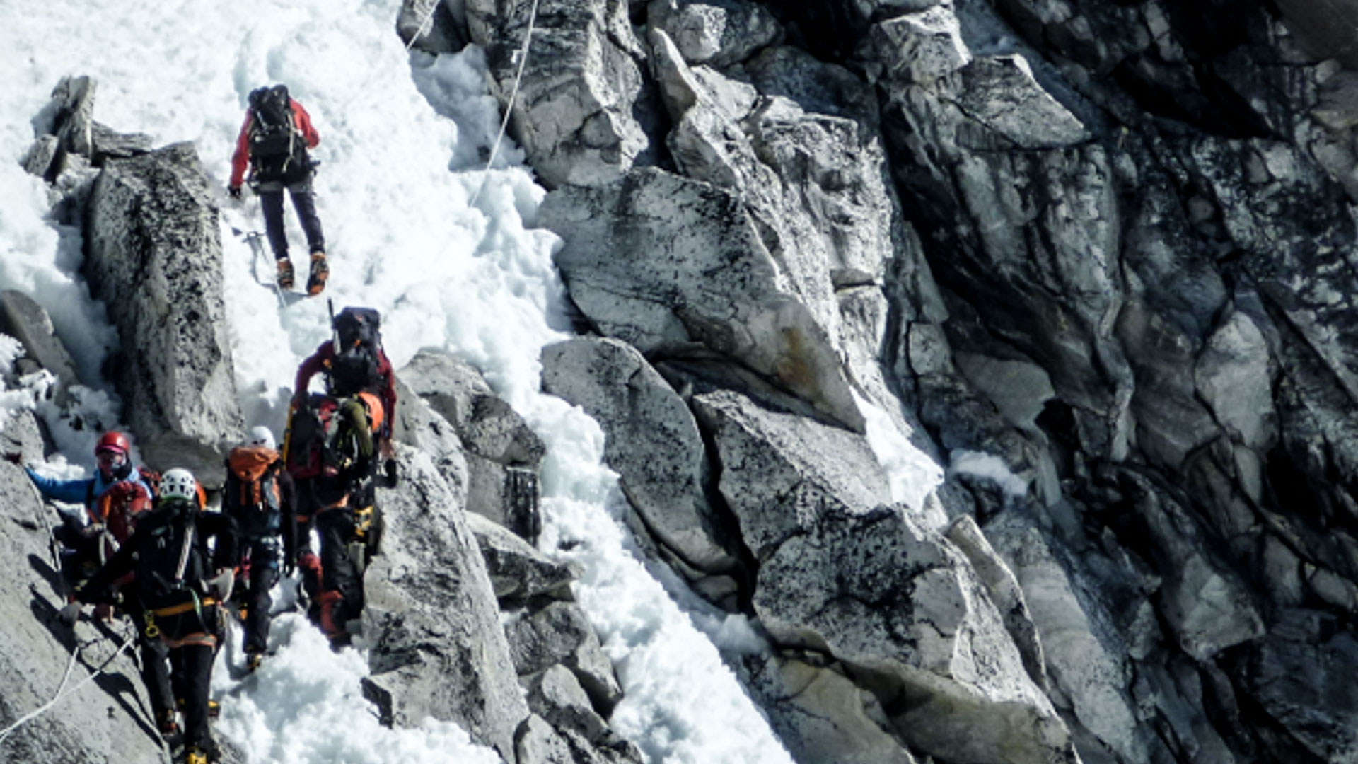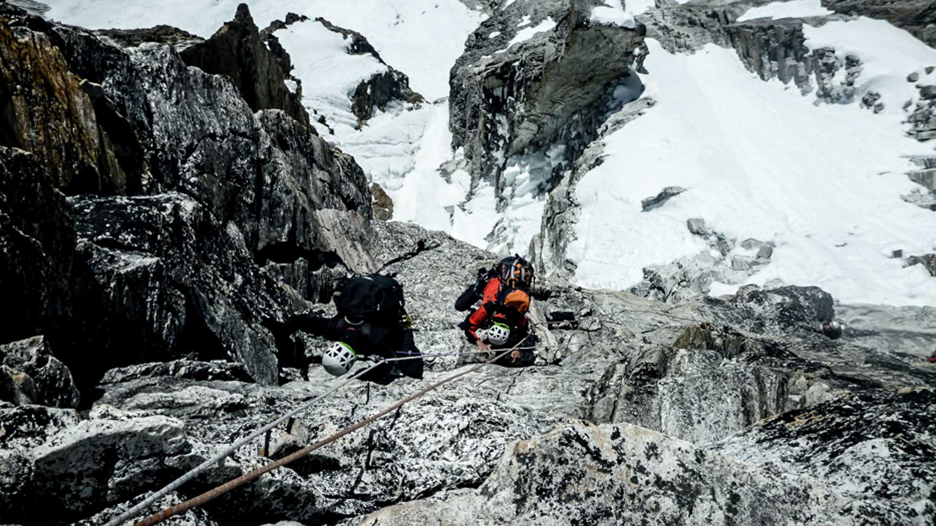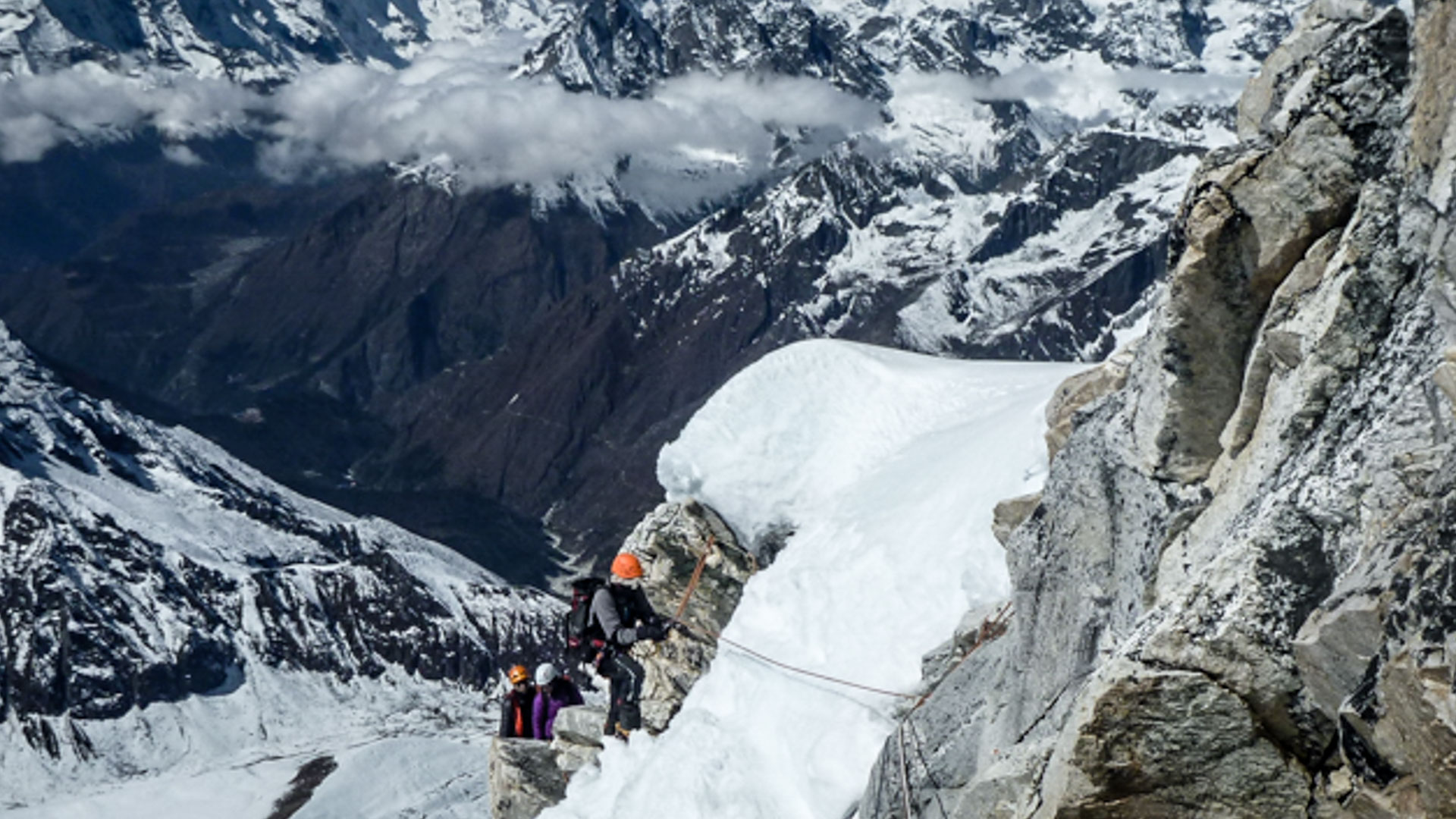 14 Tage stehen uns nun für die Besteigung der Ama Dablam zur Verfügung. Nachdem wir uns ein oder zwei Tage akklimatisieren, beginnen wir mit dem Einrichten der zwei Hochlager. Der Expeditionsleiter wird zusammen mit den Sherpas die heiklen Passagen mit Fixseilen versichern. Die Route führt uns vom Lager I unter Zuhilfenahme der angebrachten Fixseile zum Gelben Turm. Die Schwierigkeiten auf der ca 200 m langen Strecke lägen ohne die Fixseile im III. und bei einer kurzen Stelle im V. Grad UIAA. Hier werden die schweren Rucksäcke aber ihr Übriges tun. Daher ist dies auch eine erste Schlüsselstelle. Auf dem Gelben Turm in 6.050 m Höhe errichten wir den Verhältnissen entsprechend das Lager 2. Von hier geht es in kombiniertem Gelände dem Grat entlang zum Mushroom Ridge und das Lager III. Eine 45 - 55° steile letzte Firnflanke, die wir ebenfalls mit Fixseilen versichern, führt in einer letzten Etappe auf den Gipfel. Die Rundumsicht auf Lothse, Mount Everest und viele andere bekannte Gipfel ist unglaublich. Volle Konzentration ist für den Abstieg ins Lager 2 und am nächsten Tag weiter ins Basecamp gefordert.