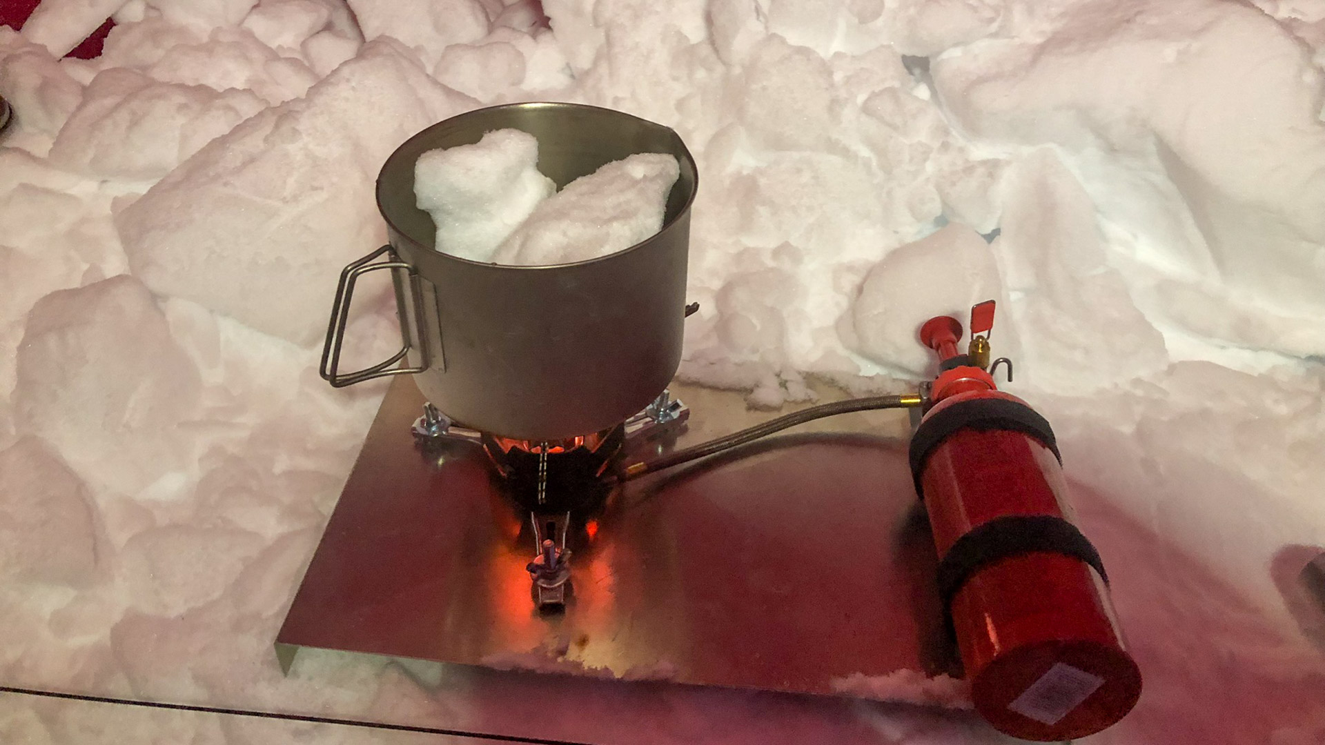 Wir schmelzen das erste Mal Schnee, essen unsere Expeditionsnahrung aus der Tüte und richten uns in den Zelten ein. Die Nacht wird etwa -14°C kalt, so dass die Schuhe morgens schon ordentlich gefroren sind. Die möglichen -30°C in dieser Gegend erreichen wir zum Glück nicht. Auch das Frühstück gibt es aus der Tüte: fertiges Müsli, auf das man nur Wasser gießen muss. Ich schütte kühlen Tee auf das Müsli, denn Müsli mit warmem Wasser ist dann doch nicht so meins.