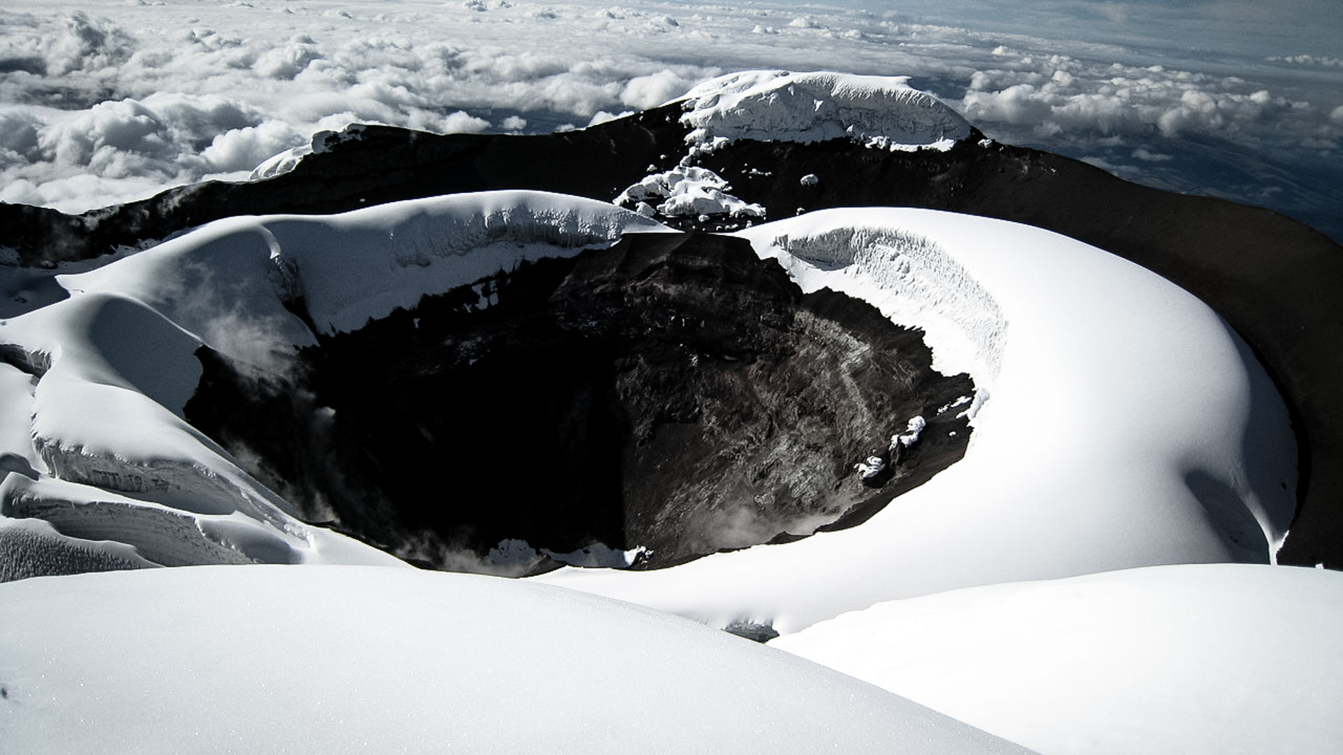 Der Andenhauptkamm verläuft in Nord-Süd-Richtung durch das Zentrum des Landes. Hier reihen sich einige der höchsten Vulkane Südamerikas aneinander, darunter der Cotopaxi (5.897 m) – einer der höchsten aktiven Vulkane der Erde – sowie der Chimborazo (6.263 m), dessen Gipfel aufgrund der Äquatorwölbung als der erdfernste Punkt vom Erdmittelpunkt gilt. Diese Vulkane sind Teil der „Straße der Vulkane“, einer geologisch aktiven Zone, in der sich zahlreiche Kraterseen, Thermalquellen und steile Berghänge befinden. Die Landschaft ist geprägt von Paramo – einem feuchten, moos- und gräserreichen Hochland, das sich ab etwa 3.500 m über dem Meeresspiegel erstreckt und Heimat vieler endemischer Pflanzen- und Tierarten ist.