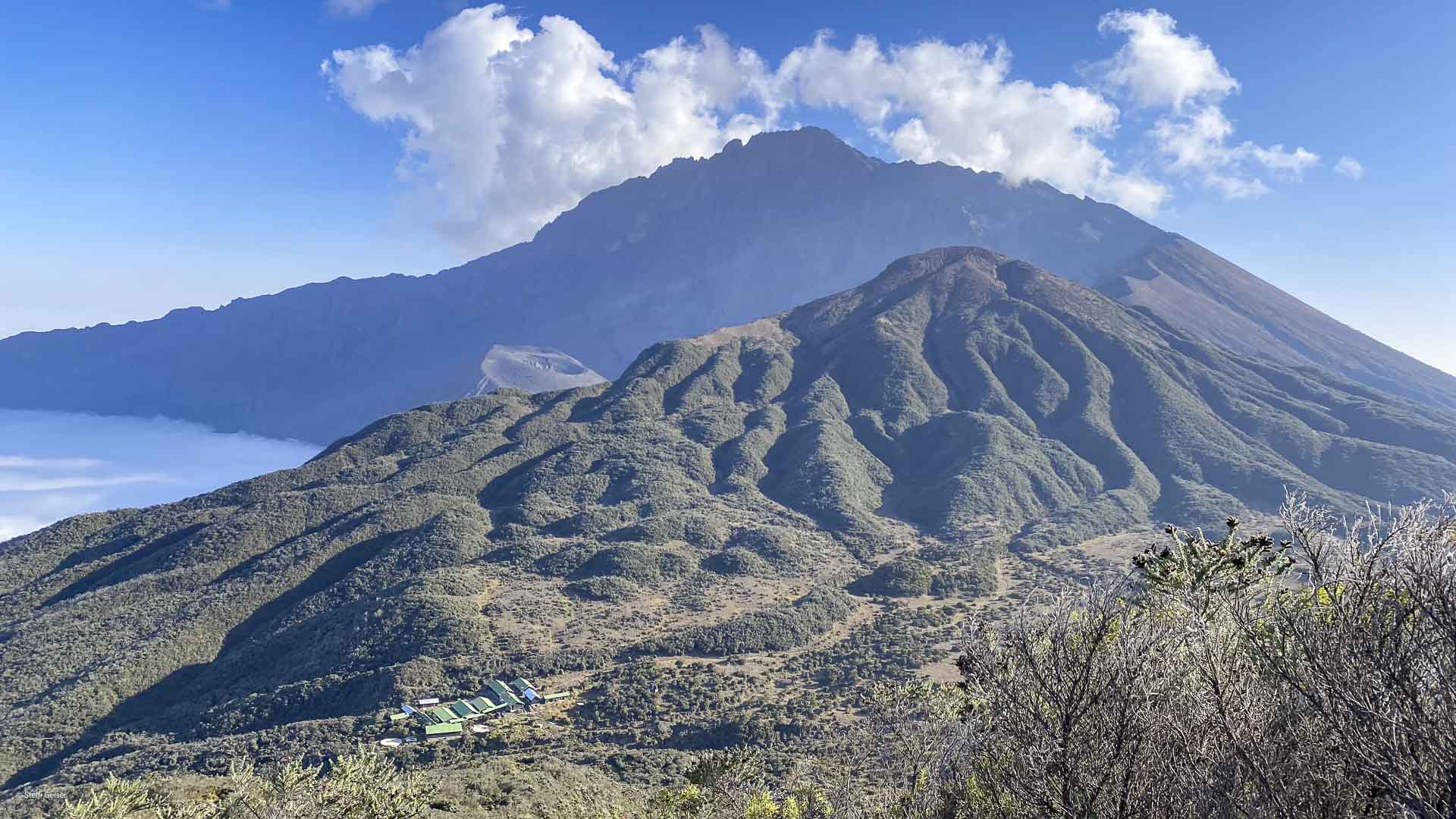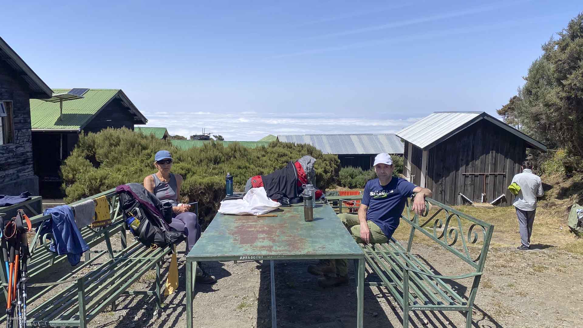 Die Saddle Hut, oder auch Sattelhütte befindet sich auf etwa 3.500 m Höhe am Mount Meru oberhalb der Baumgrenze zwischen Little Meru und Rhino Point, die beide auf ca. 3.800 m liegen. Sie ist die zweite Hütte während der Mount Meru Besteigung und bietet eine wunderbare Aussicht. Vierbettzimmer mit Stockbetten und Matratzen für Gäste sowie Unterbringungen für Guides und Träger sind hier auf mehrere Gebäude verteilt. Die Ausstattung ist einfach, aber zweckmäßig und in Ordnung. Es gibt außerdem ein Toiletten- und Waschhaus, in dem in der Regel aber kein fließendes Wasser zur Verfügung steht und durch unsere Mannschaft zur Verfügung gestellt wird, eine Küche, in der unsere Mannschaft unsere Mahlzeiten zubereitet, sowie ein weiteres Gebäude, in dem sich der Speisesaal befindet.
