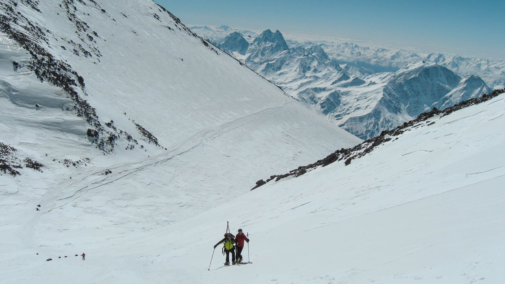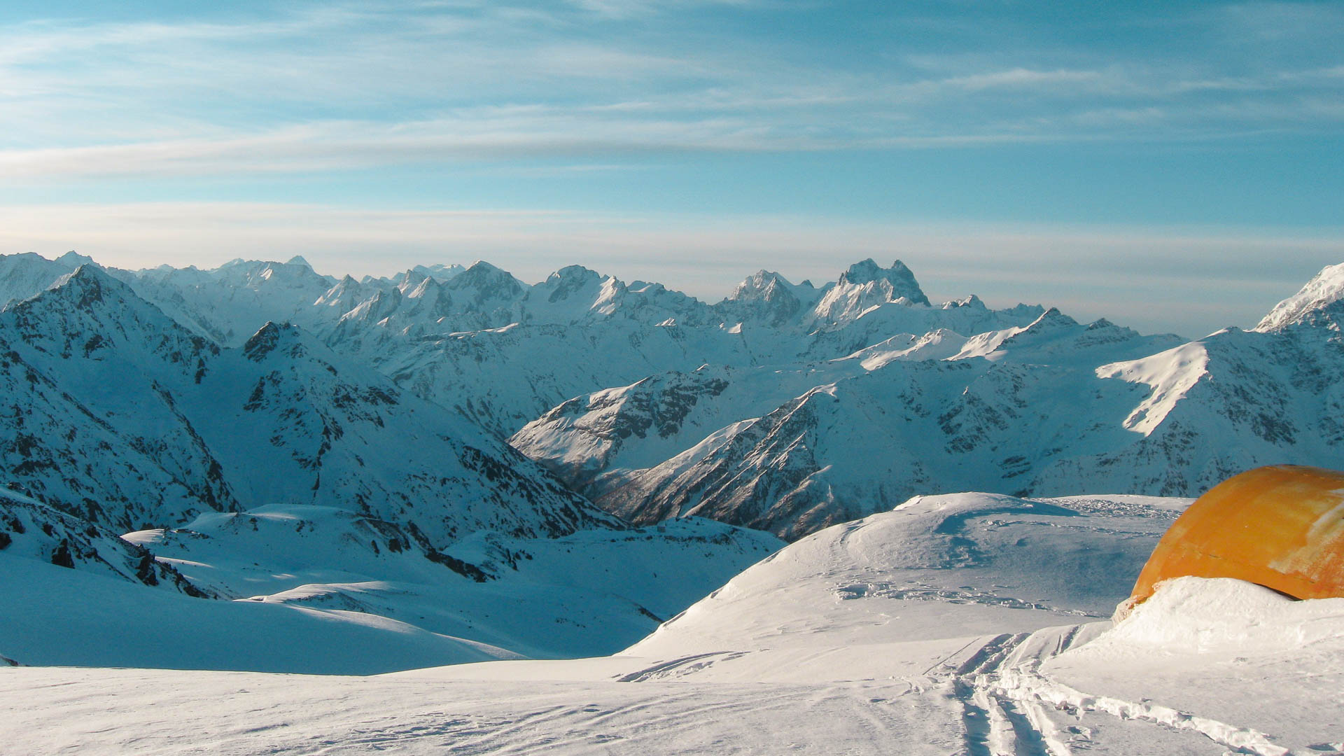 In den nächsten beiden Tagen unternehmen wir ausgedehnte und einsame Skitouren im Adyrsu Tal. Der Granovskovo-Pass mit seinen 3.900 m Höhe oder der Koiavgan-Pass (3.500 m), Gumachi-Pass (3.540 m) und weitere Dreitausender sind Ziele, die wir über weite Gletscher anpeilen können. Je nach Wetter- und Schneelage suchen wir uns die lohnendsten Gipfel aus. Belohnt werden wir mit traumhaften Ski-Abfahrten bis zu 1.000 m über weite und unverspurte Gletscherhänge sowie dem grandiosen Fernblick über den Kaukasus und auf den Elbrus, der mit seiner weiten Gletscherflanke zu uns herüber schaut. Am Abend genießen wir die gute Verköstigung mit traditionellen russischen Gerichten, bevor es ins Bett geht. Zwei Übernachtungen im Ullu Tau Camp.