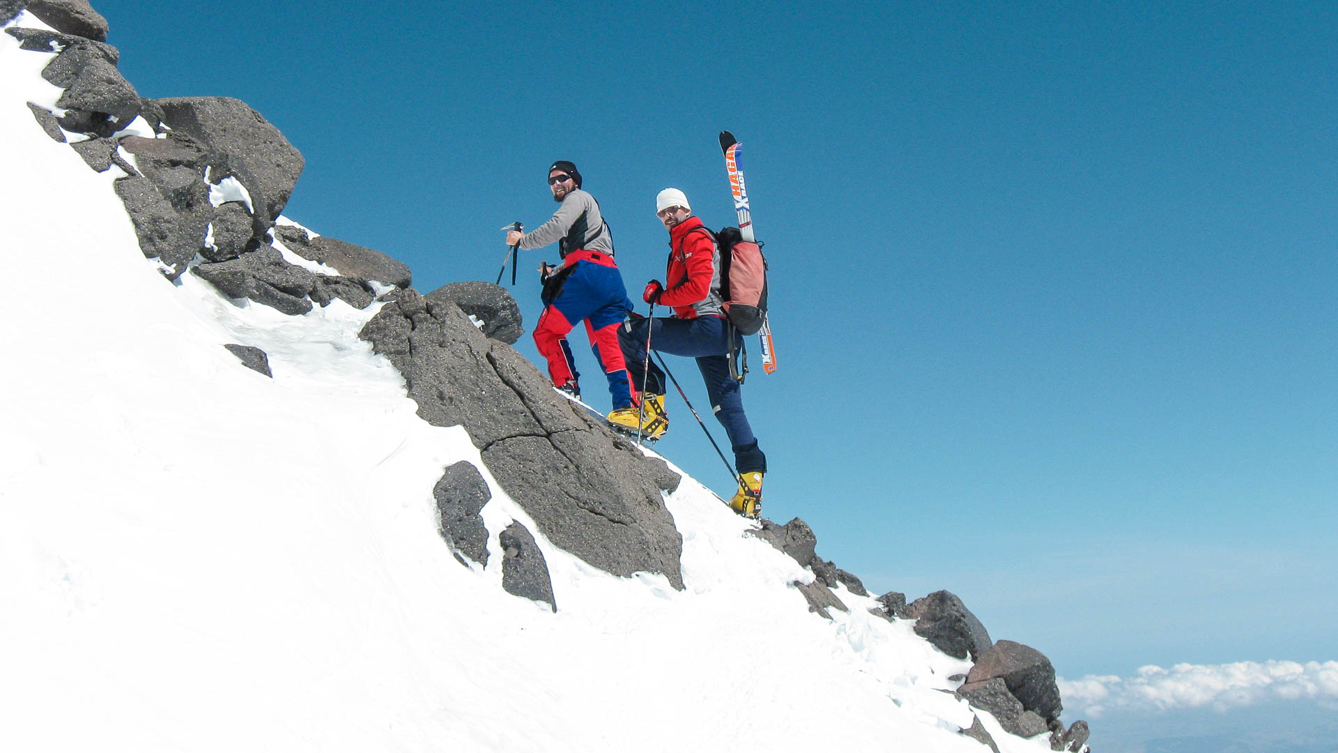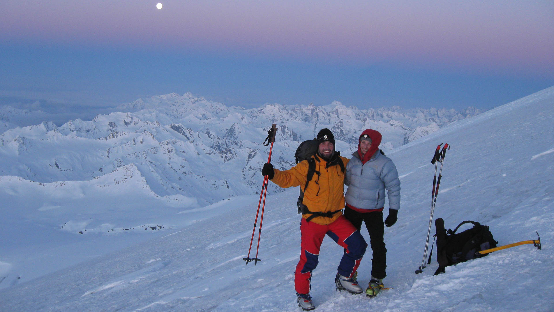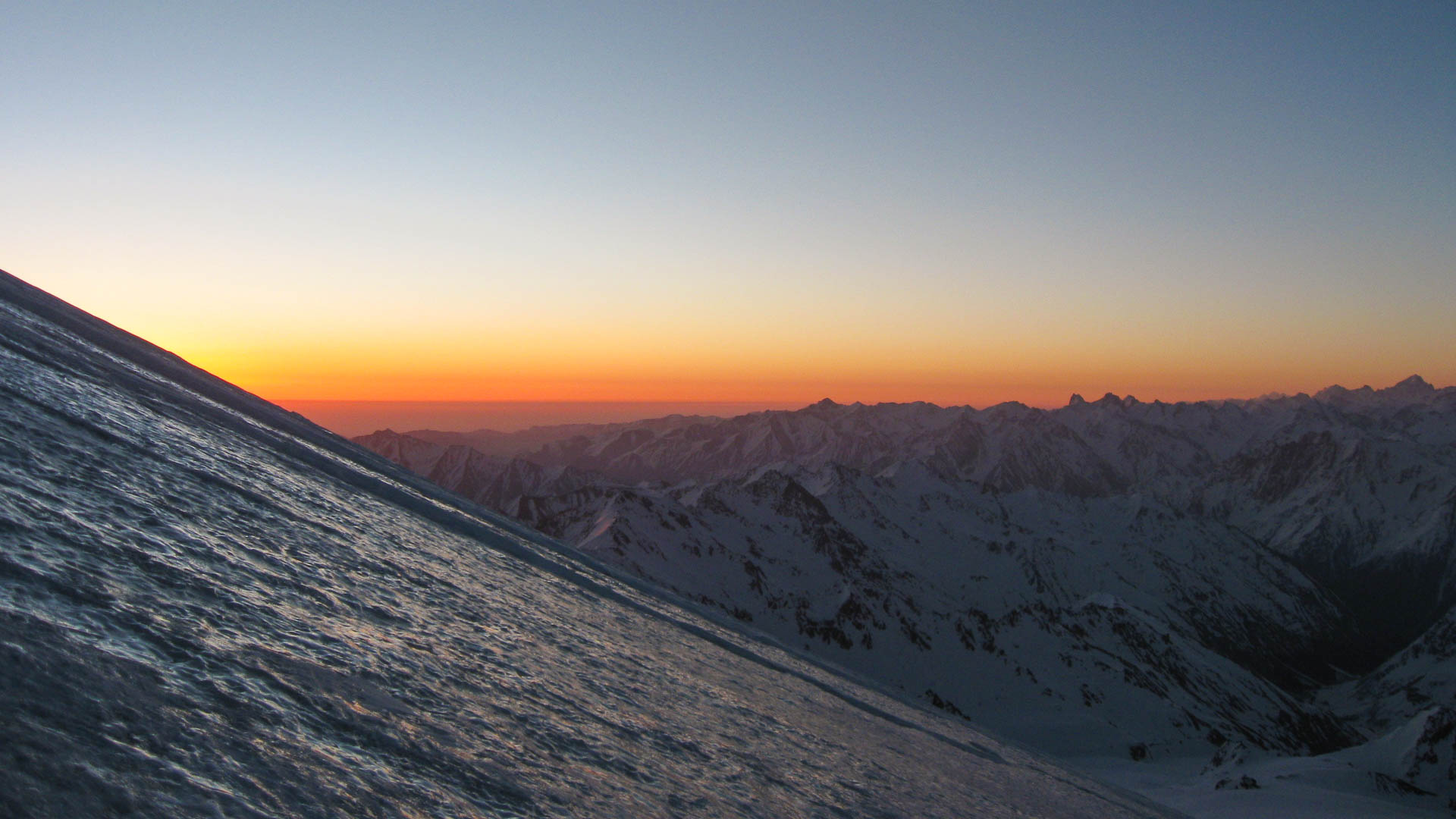 Noch in der Nacht gegen 03:00 Uhr brechen wir auf und machen uns an den langen und beschwerlichen Aufstieg zum höchsten Berg Europas. Vorbei an den vom Vortag bekannten Pastuhov Felsen ziehen wir unsere Spur dem Elbrus Gipfel entgegen. Solange die Sonne noch nicht aufgangen ist, muss mit entsprechender Kälte gerechnet werden. Optional können wir uns diese Etappe auch mit einer Fahrt mit dem Snowcat Mobil erleichtern (Aufpreis). Über einen endlos erscheinenden Firnhang kommen wir in die Sedlowina Firnmulde auf 5.300 m. Von hier geht es weiter noch 350 Höhenmeter zum Westgipfel auf 5.642 m. Das Ziel ist erreicht, mit Ski auf einem der Seven Summits und auf dem Dach Europas zu stehen. Die nun folgende Abfahrt hat es in sich. Sie ist einfach nur lang und anstrengend nach den Strapazen des Aufstiegs. Wir fahren zurück zu den Botschkihütten und feiern den Gipfelerfolg.